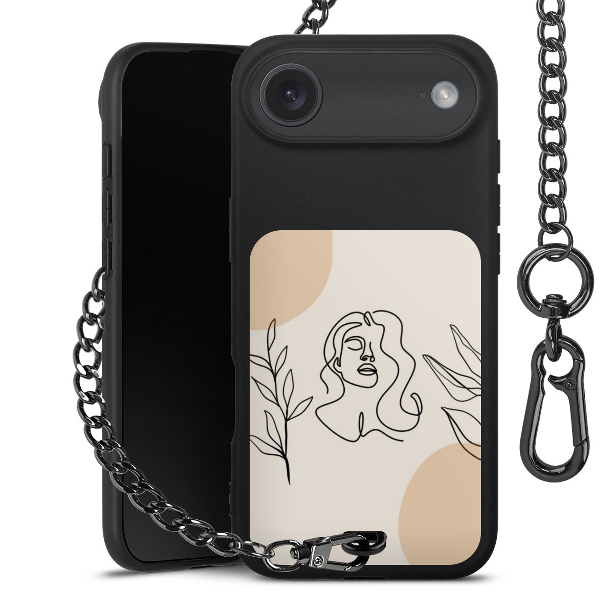 - Mattschwarze Handyhülle mit Metallkette