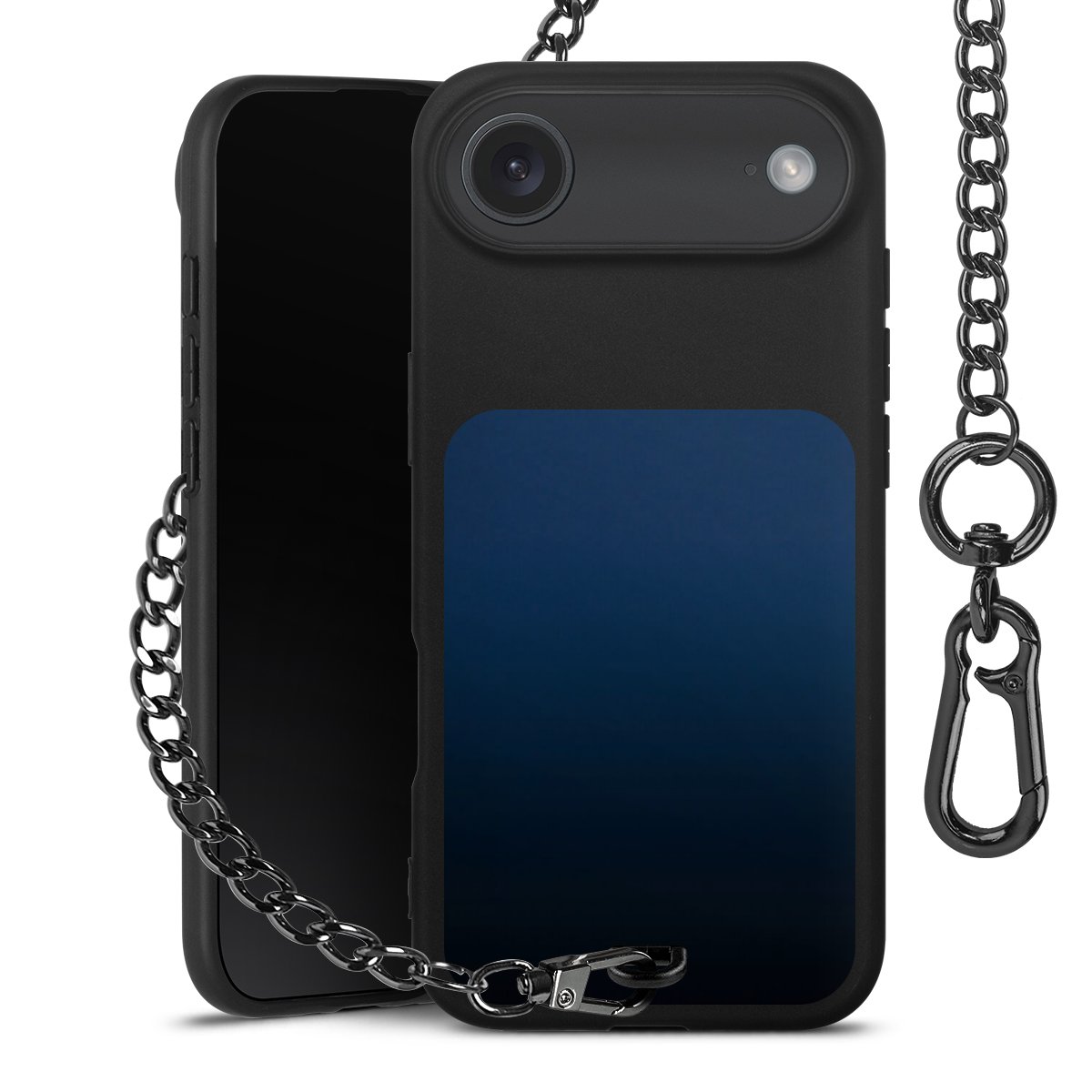 • Mattschwarze Handyhülle mit Metallkette