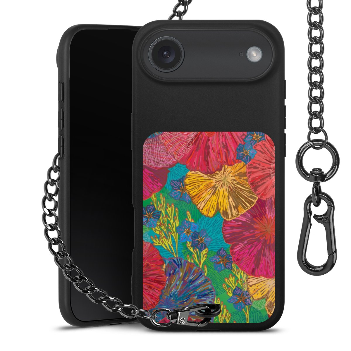 • Mattschwarze Handyhülle mit Metallkette