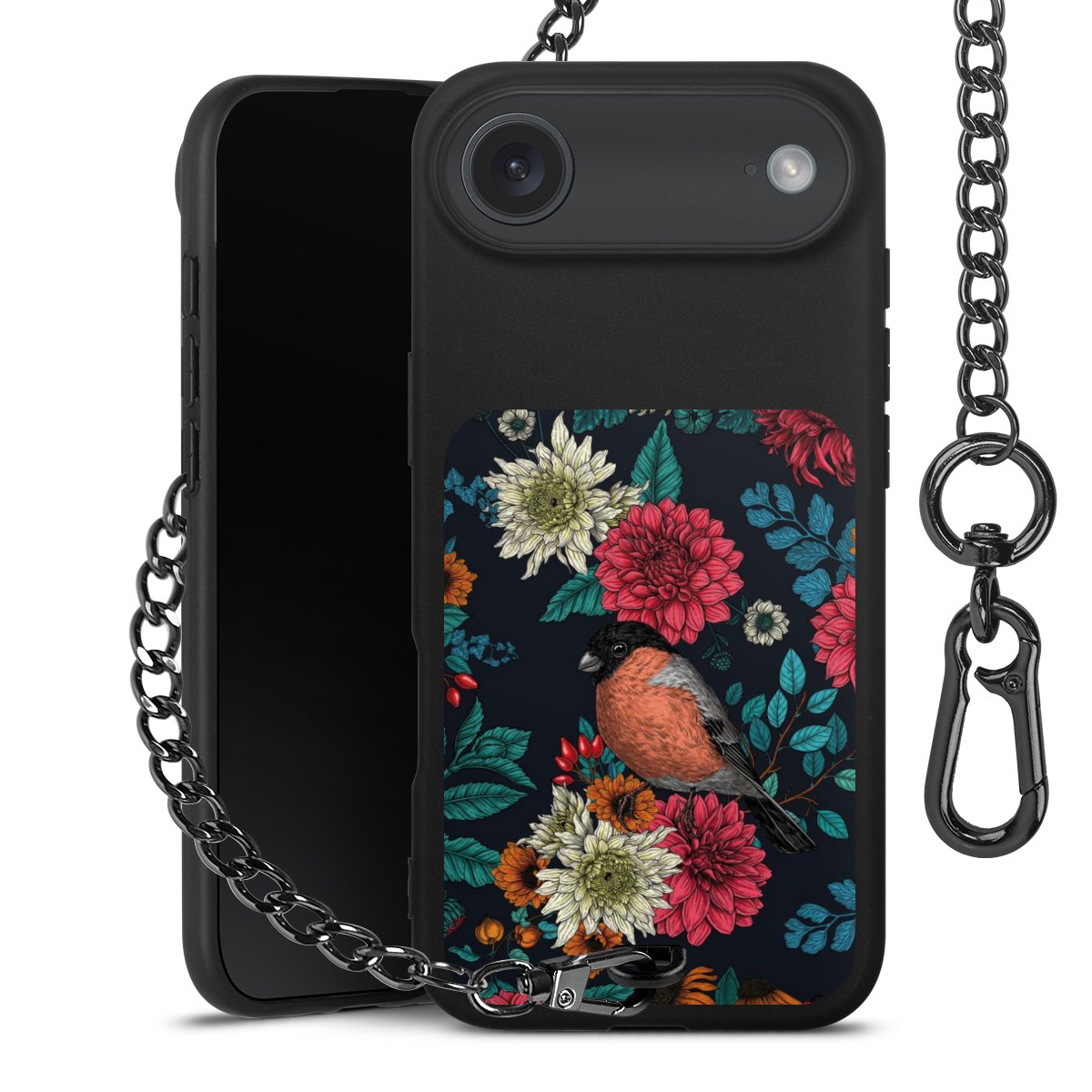 • Mattschwarze Handyhülle mit Metallkette