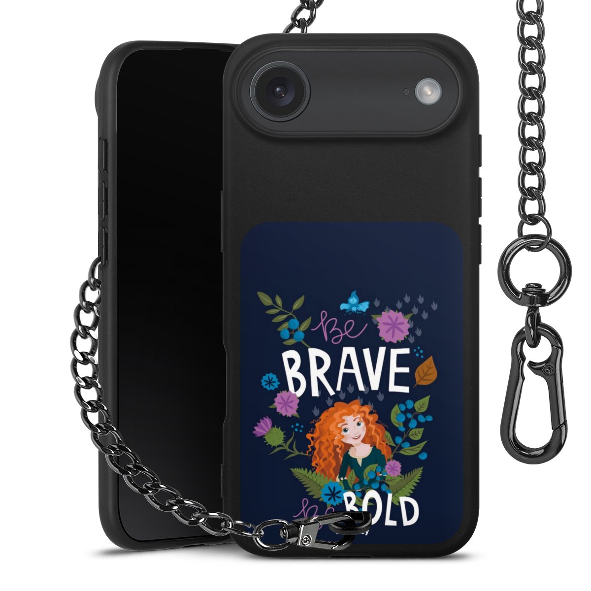 - Mattschwarze Handyhülle mit Metallkette