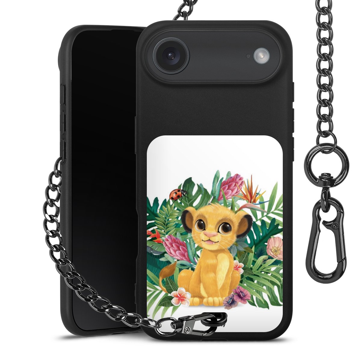 • Mattschwarze Handyhülle mit Metallkette