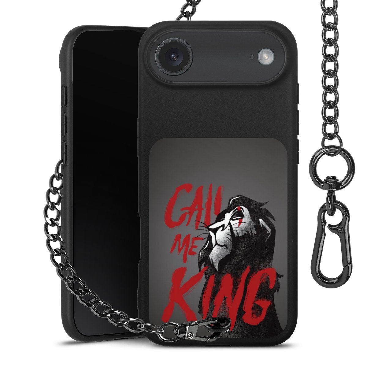 • Mattschwarze Handyhülle mit Metallkette