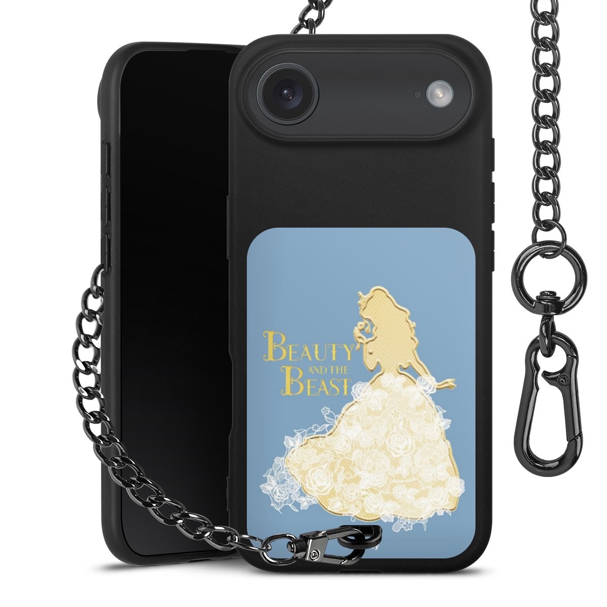 • Mattschwarze Handyhülle mit Metallkette