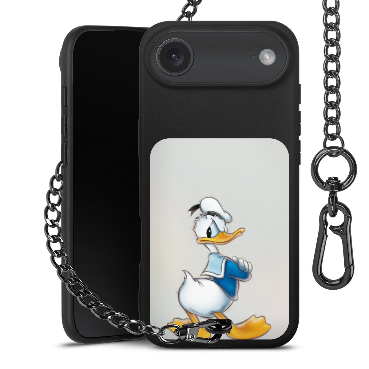 • Mattschwarze Handyhülle mit Metallkette