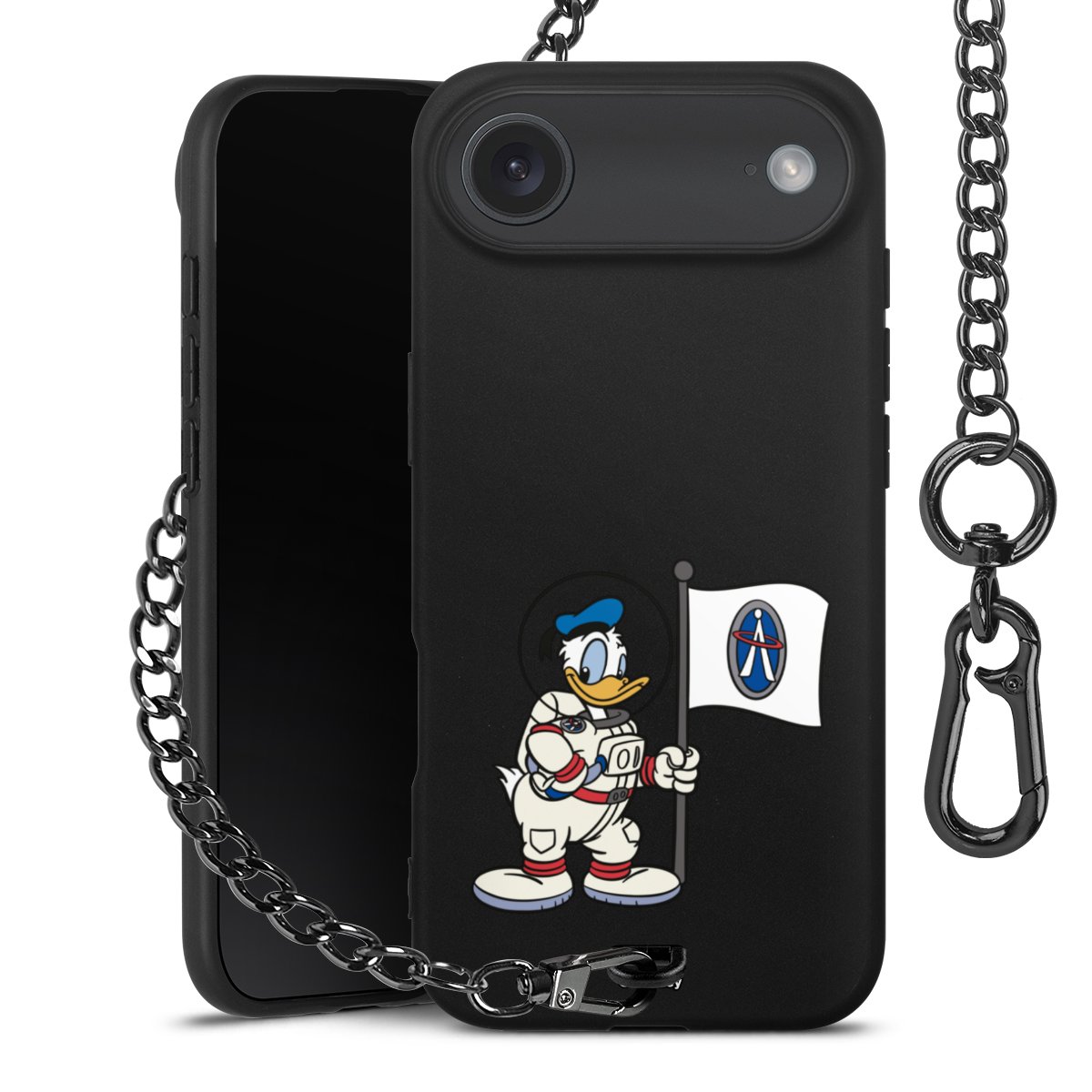 • Mattschwarze Handyhülle mit Metallkette