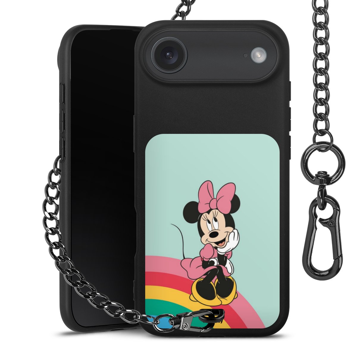 • Mattschwarze Handyhülle mit Metallkette
