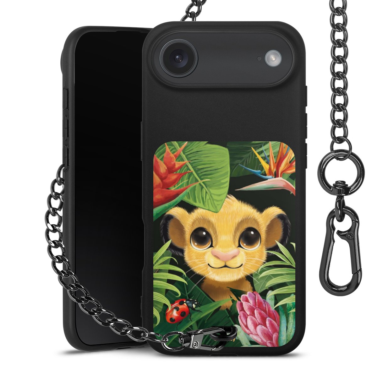 • Mattschwarze Handyhülle mit Metallkette