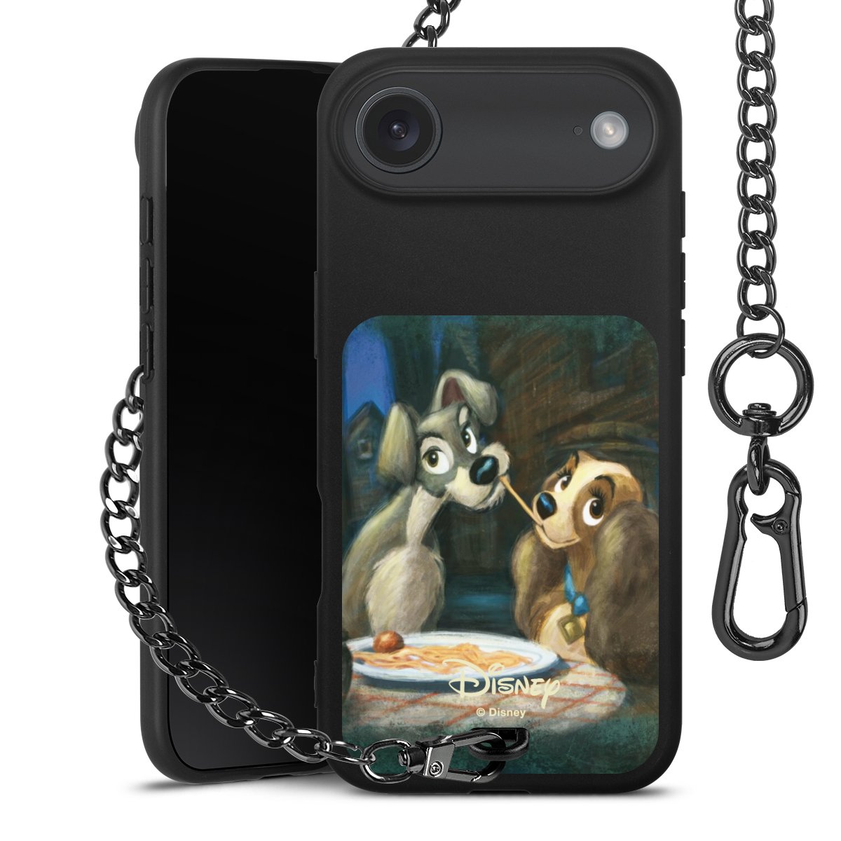• Mattschwarze Handyhülle mit Metallkette