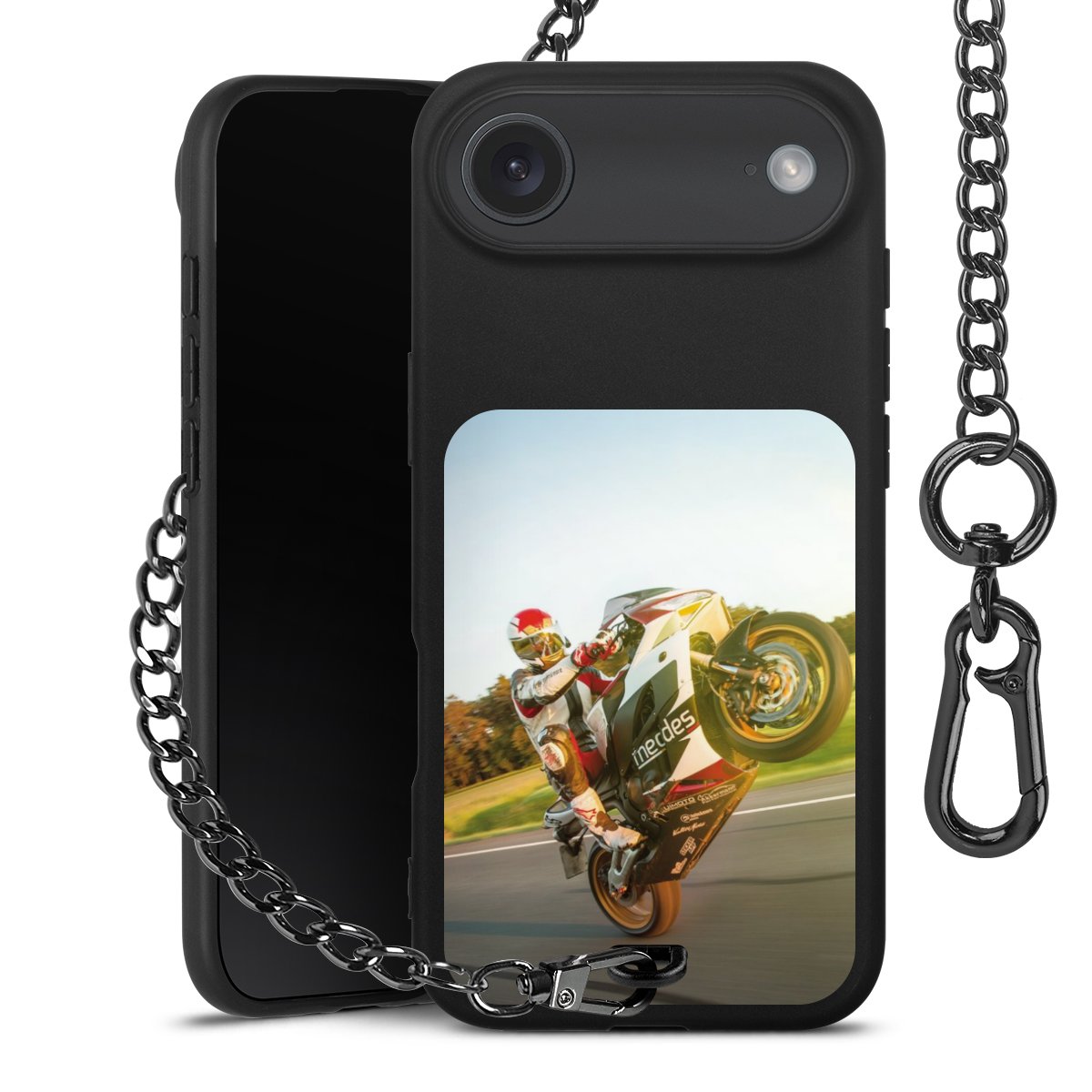 • Mattschwarze Handyhülle mit Metallkette