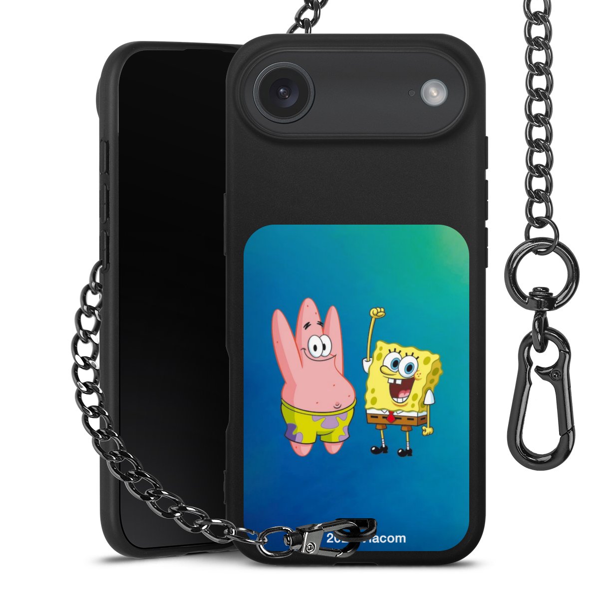 Die Handyhülle verfügt über eine mittig am unteren Rand platzierte Öse, an der die Metallkette stabil befestigt ist. Bestelle die Hülle einfach für Dein Smartphone-Modell, dann passt sie wie angegossen und Du brauchst sie bloß einmal anzudrücken. Handy in die Tasche, Karabiner an den Hosenbund – schon kann die Party starten.