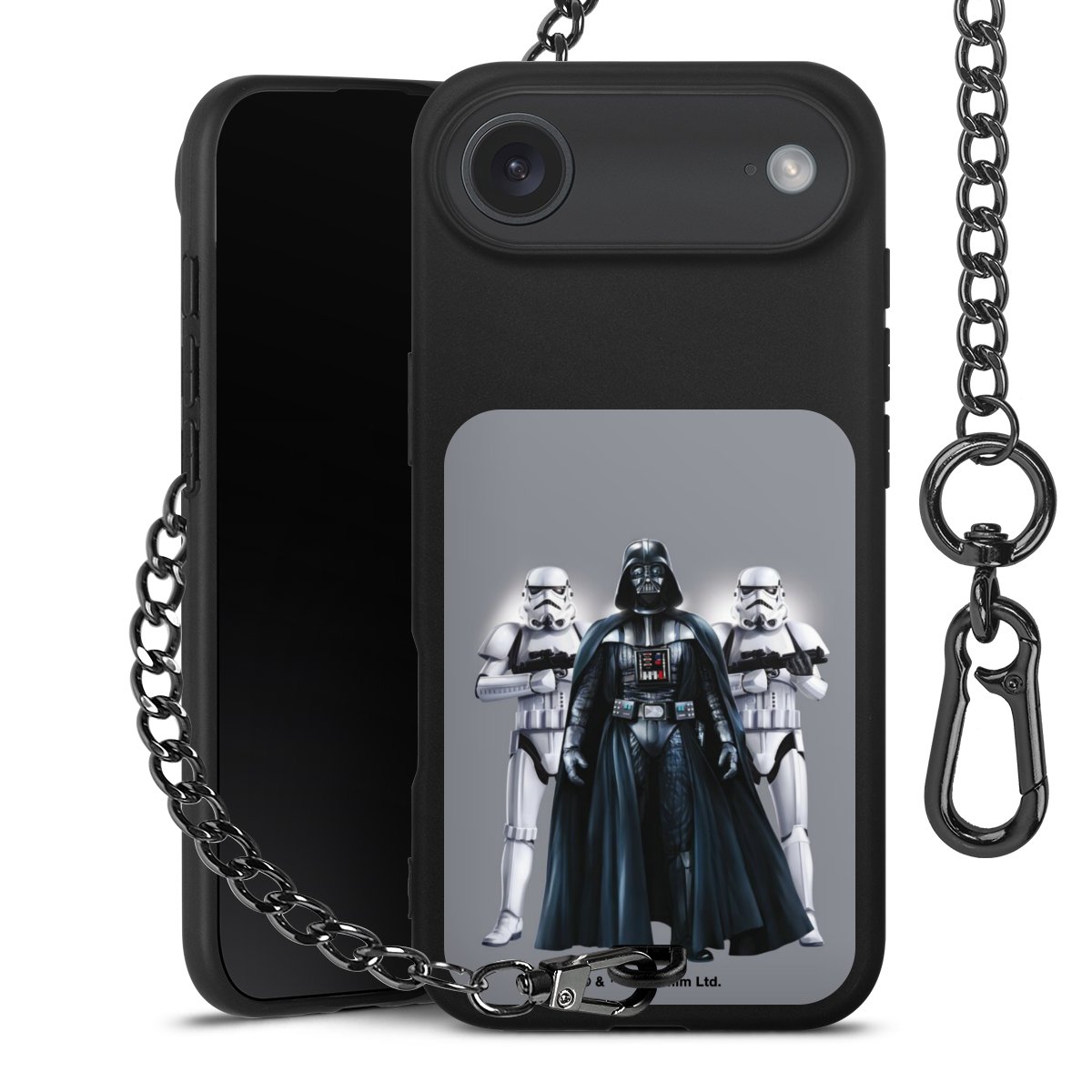 • Mattschwarze Handyhülle mit Metallkette