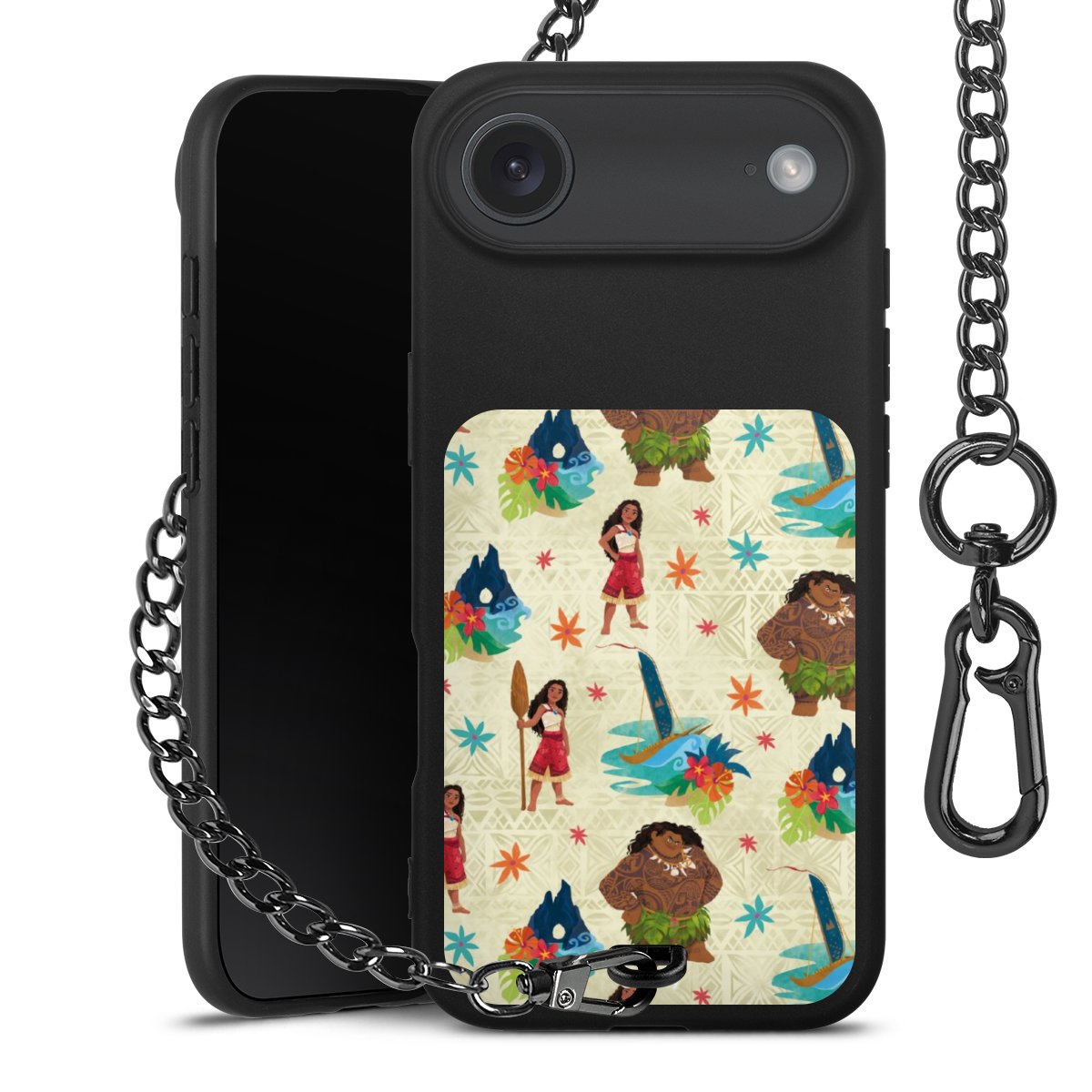 • Mattschwarze Handyhülle mit Metallkette