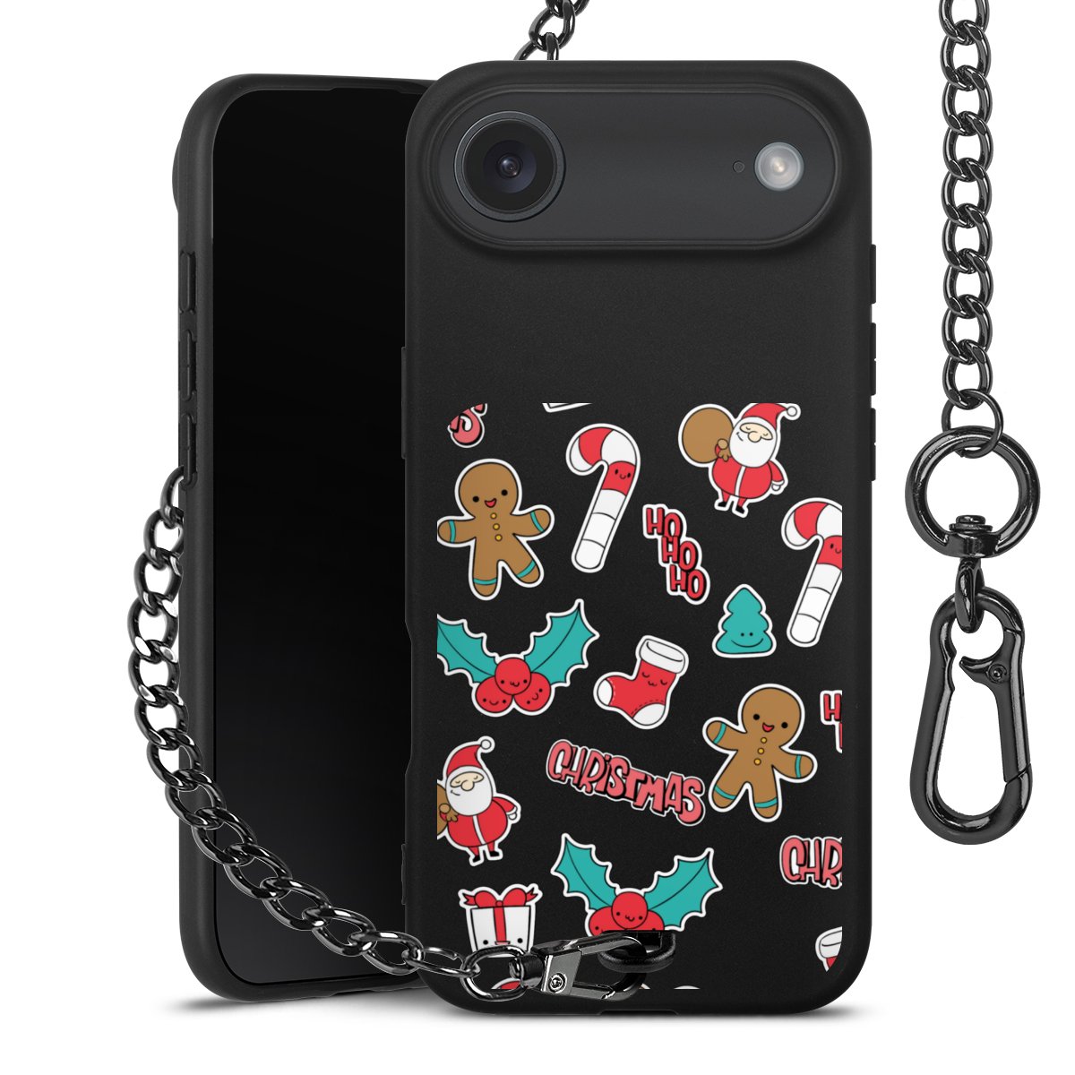- Mattschwarze Handyhülle mit Metallkette
