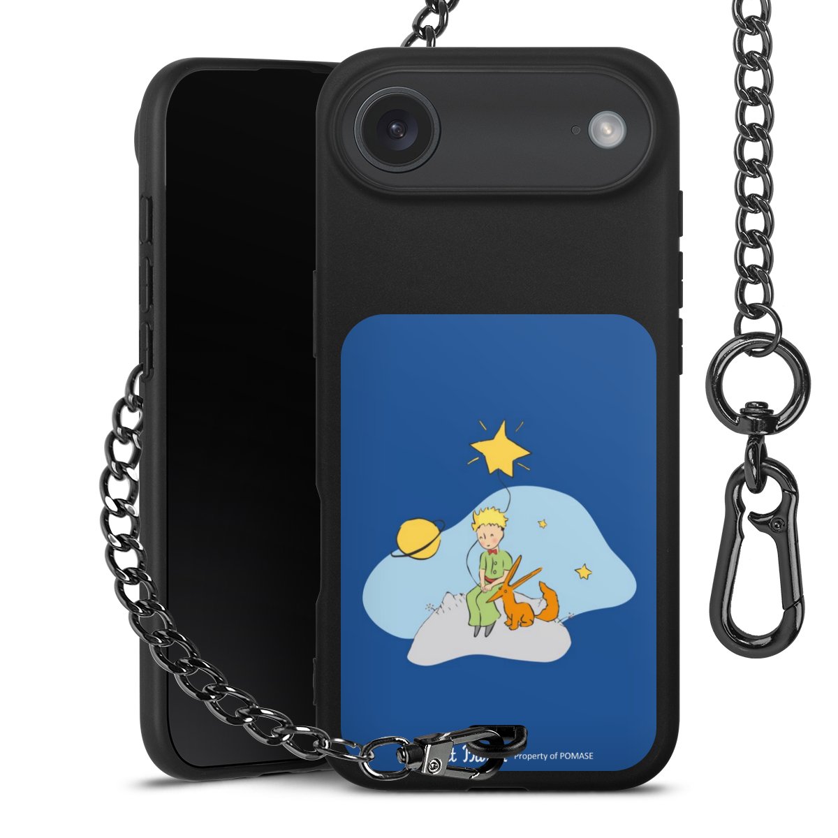 Die Handyhülle verfügt über eine mittig am unteren Rand platzierte Öse, an der die Metallkette stabil befestigt ist. Bestelle die Hülle einfach für Dein Smartphone-Modell, dann passt sie wie angegossen und Du brauchst sie bloß einmal anzudrücken. Handy in die Tasche, Karabiner an den Hosenbund – schon kann die Party starten.