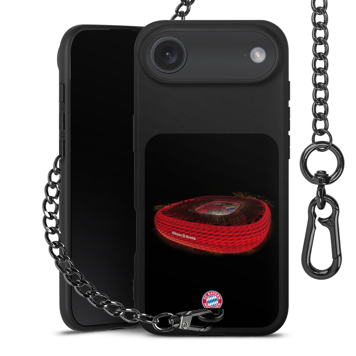• Mattschwarze Handyhülle mit Metallkette
