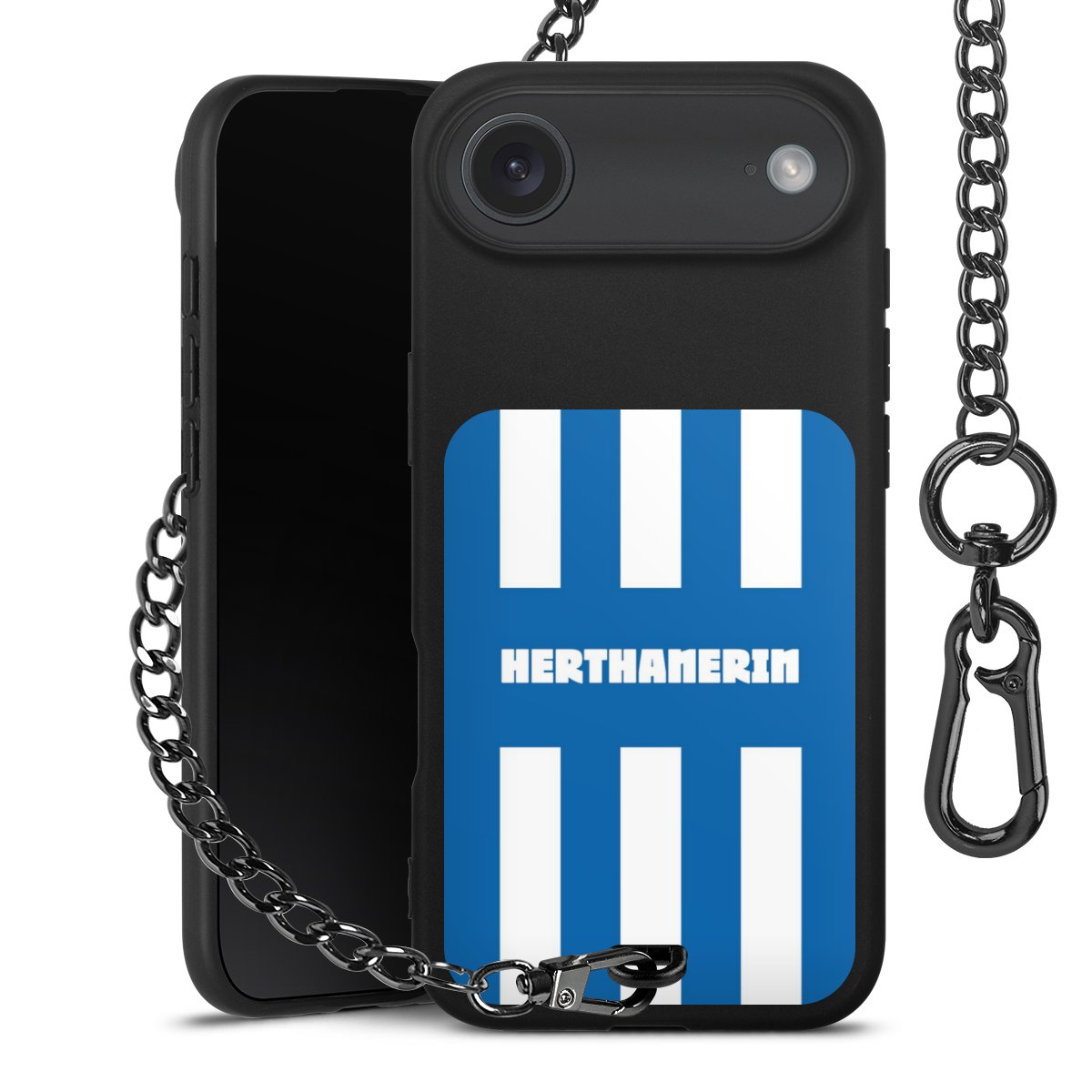 • Mattschwarze Handyhülle mit Metallkette