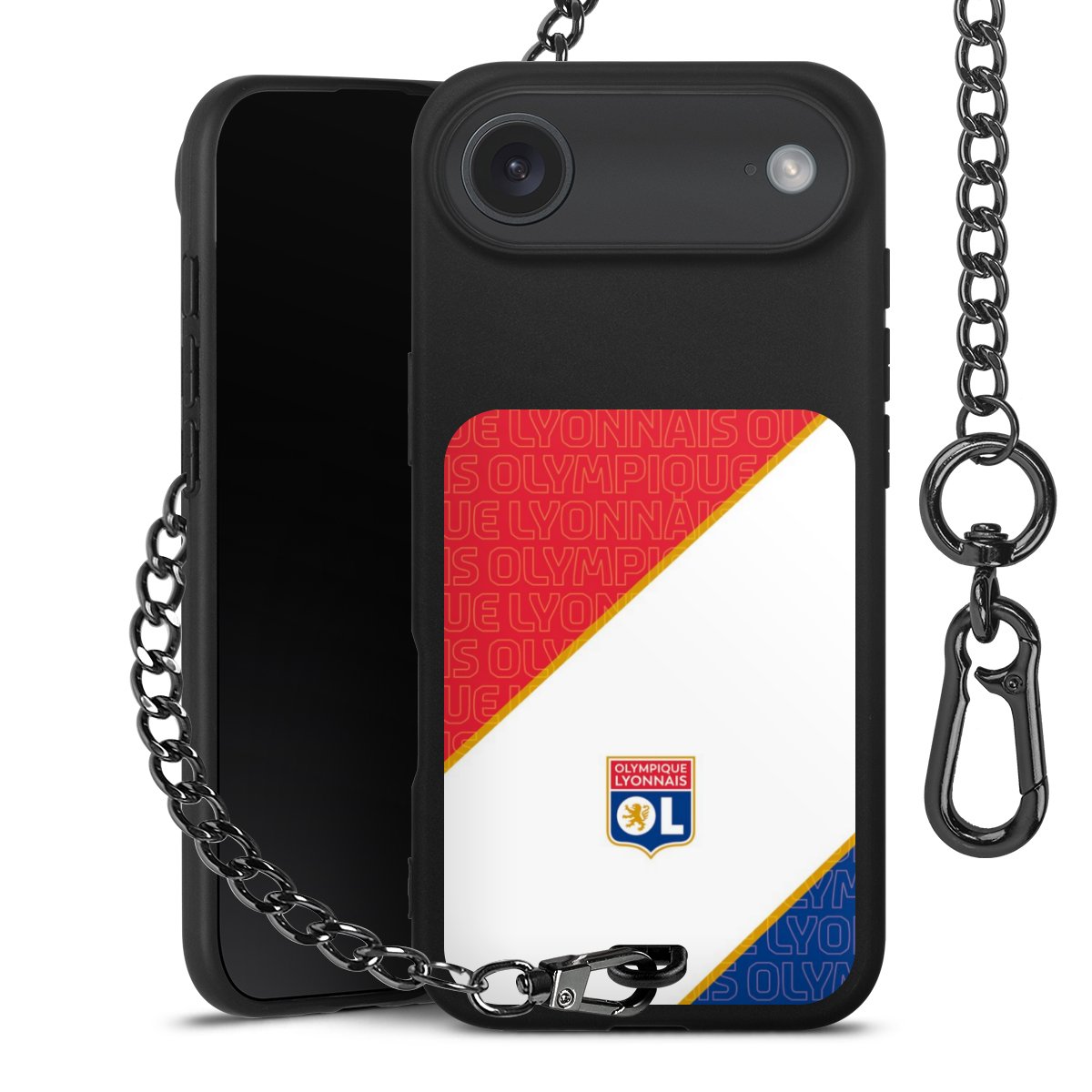 • Mattschwarze Handyhülle mit Metallkette