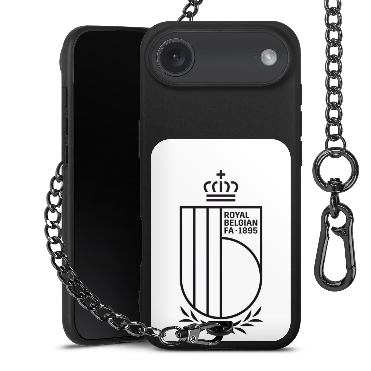 - Mattschwarze Handyhülle mit Metallkette