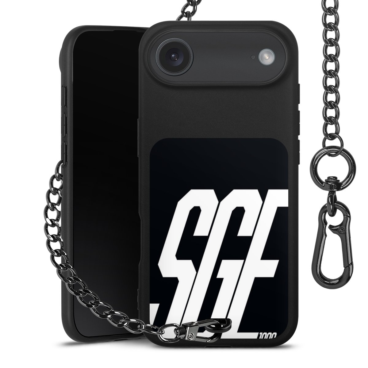 • Mattschwarze Handyhülle mit Metallkette