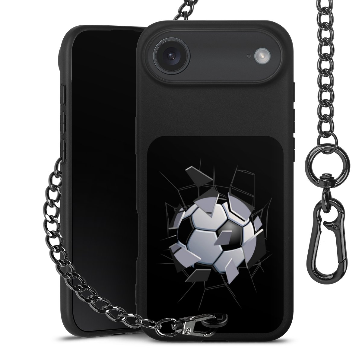 - Mattschwarze Handyhülle mit Metallkette