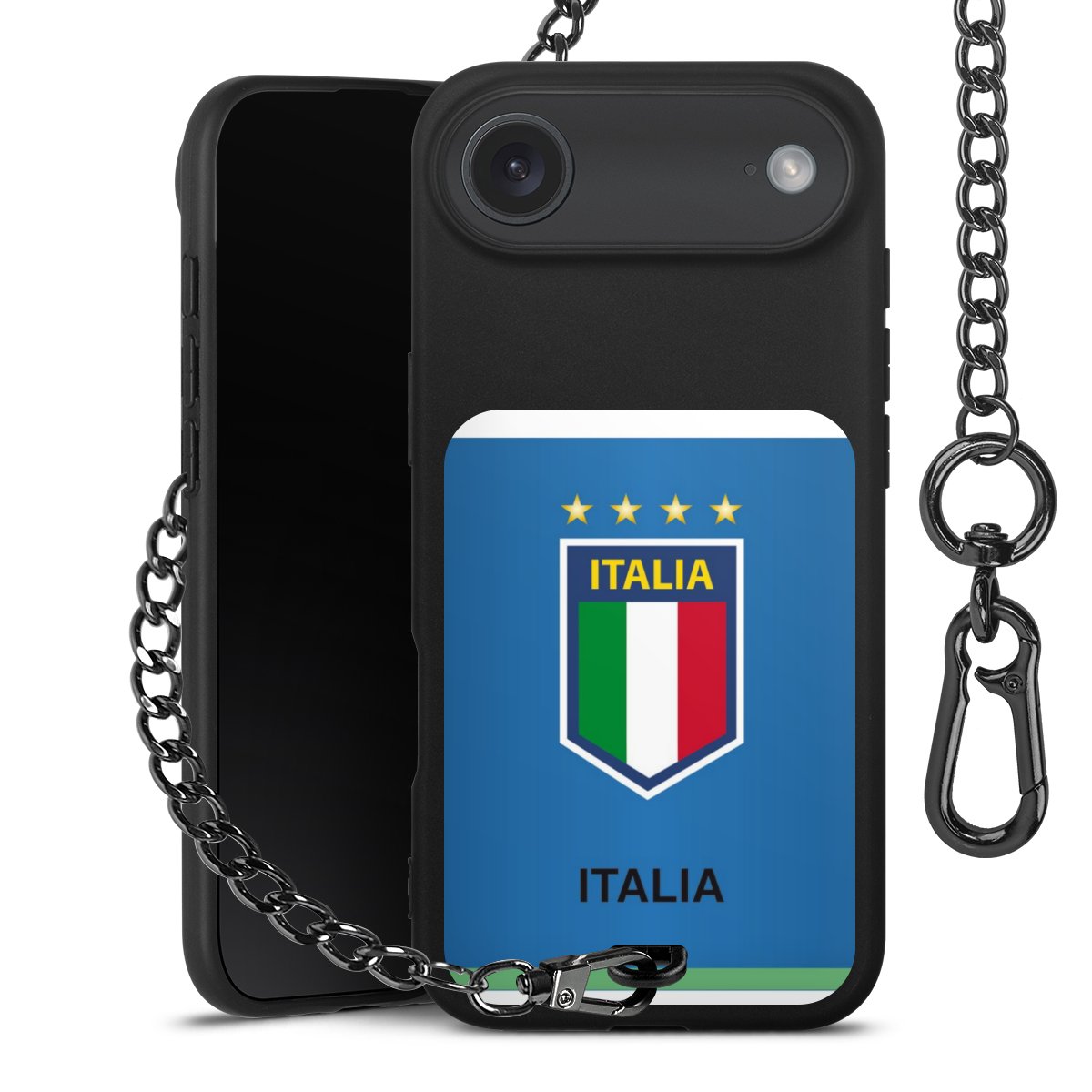 - Mattschwarze Handyhülle mit Metallkette