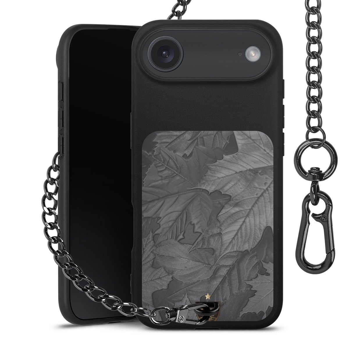 • Mattschwarze Handyhülle mit Metallkette