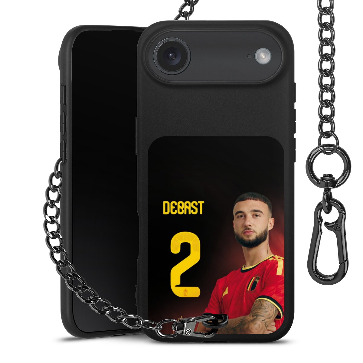 Ob im Alltag, beim Feiern mit Deinen Jungs oder auf Festivals – mit dem superpraktischen Belt Case steckst Du alle Sorgen um Diebstahl und Spider-App ganz entspannt in die Tasche. Es besteht aus einem coolen mattschwarzen Silikon Premium Case, dem Du ein individuelles Design verpassen kannst, und einer daran befestigten Kette in lässiger Gunmetal-Optik. Mit dem Karabiner auf der anderen Seite klickst Du die Kette mit einem Handgriff an Deine Gürtelschlaufe und schon ist Dein Smartphone sicher und stets griffbereit in der Hosentasche verstaut.