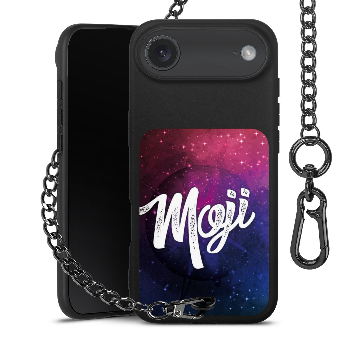 • Mattschwarze Handyhülle mit Metallkette