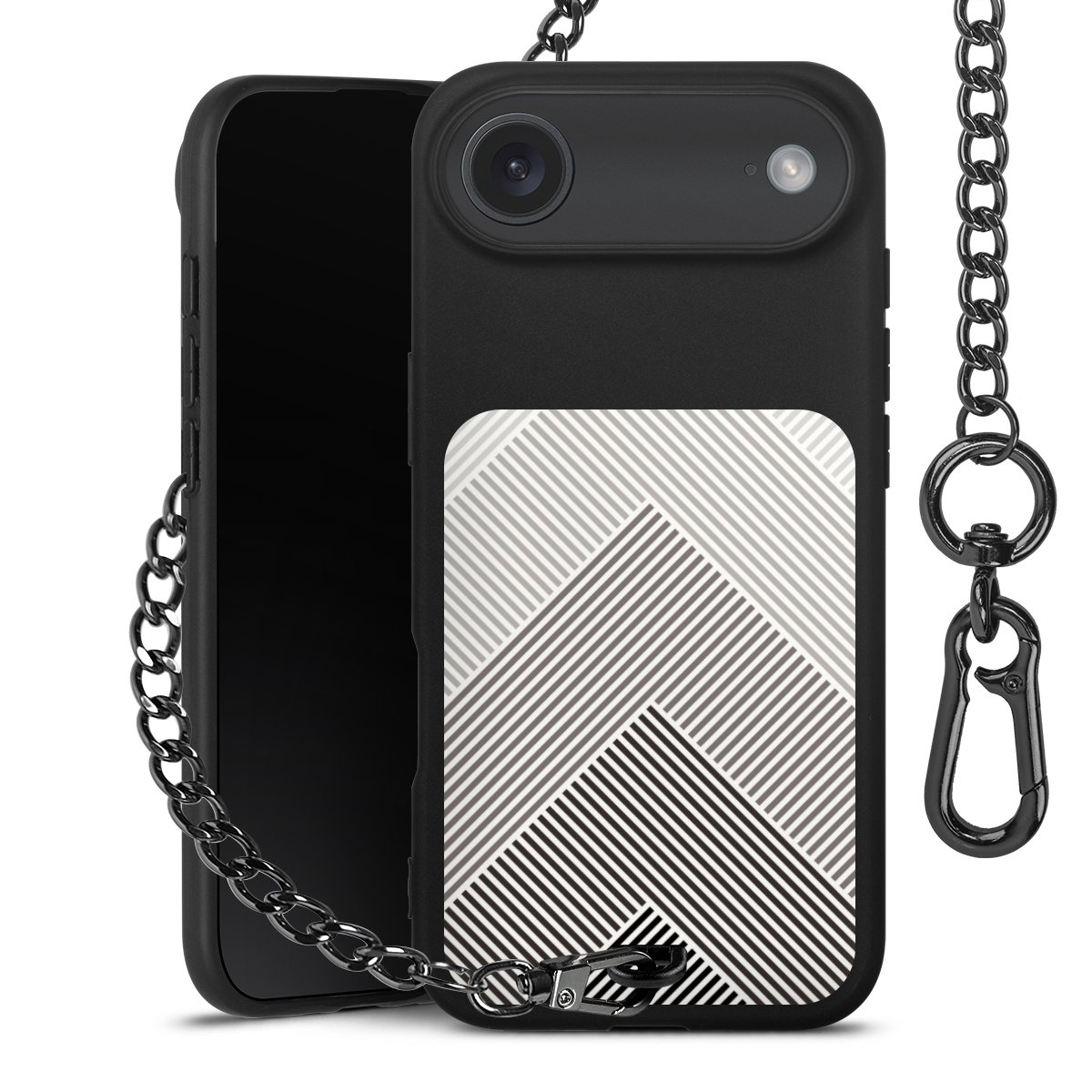 • Mattschwarze Handyhülle mit Metallkette