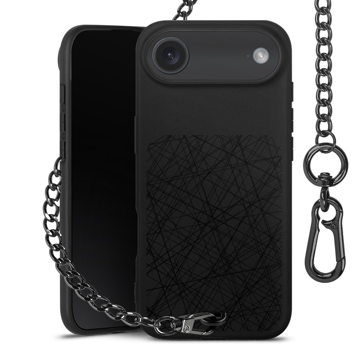 - Mattschwarze Handyhülle mit Metallkette