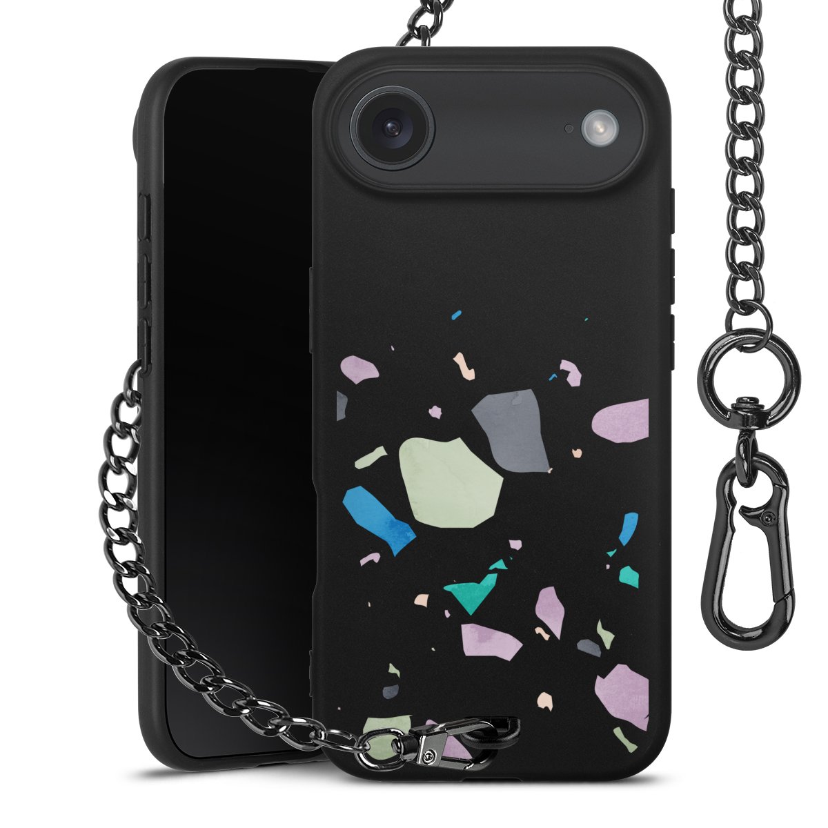 • Mattschwarze Handyhülle mit Metallkette