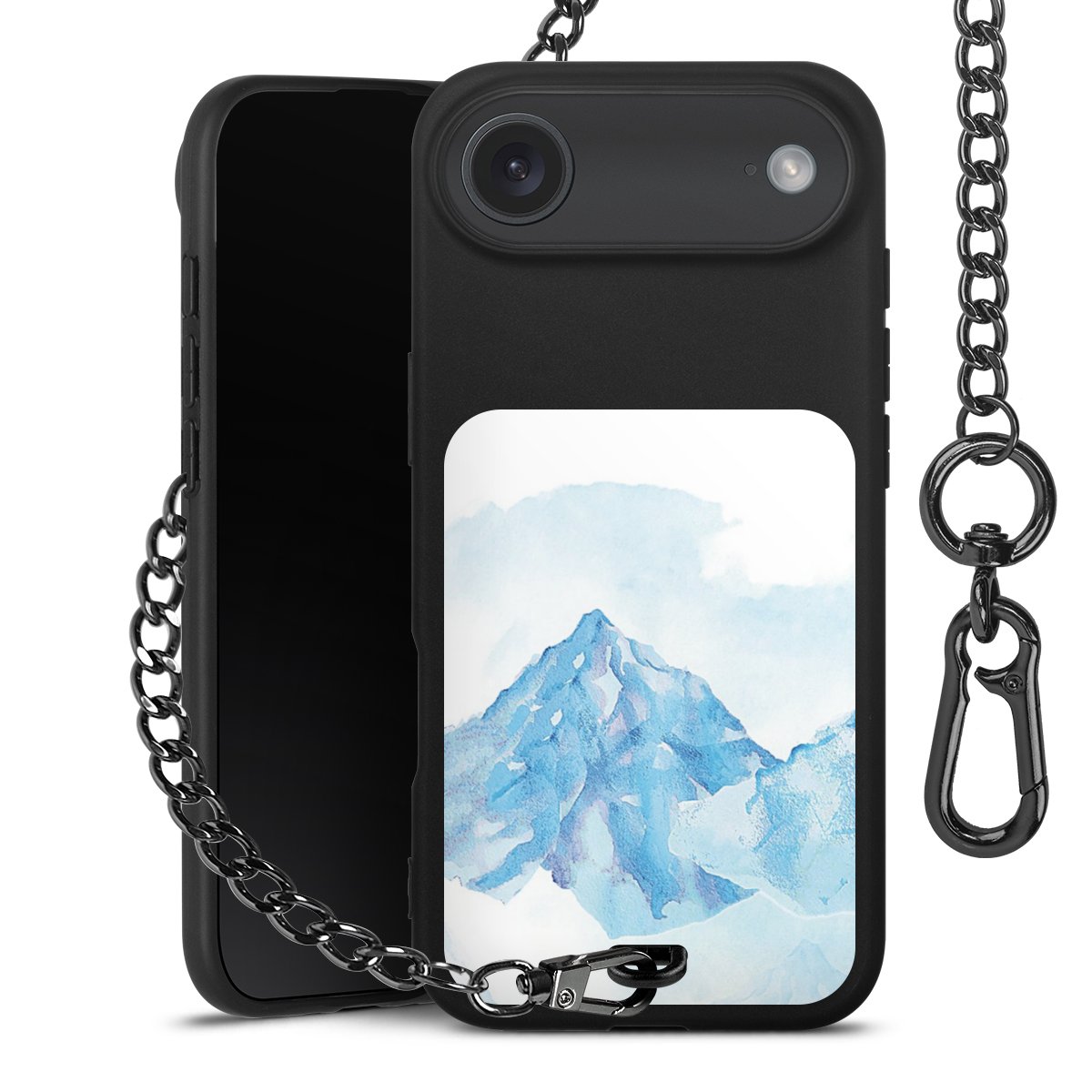 - Mattschwarze Handyhülle mit Metallkette