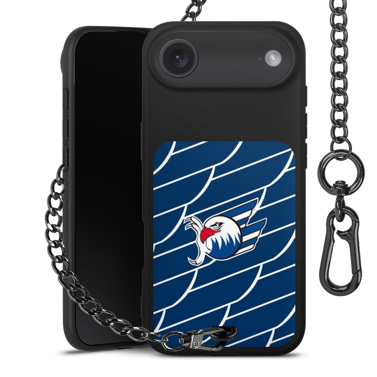• Mattschwarze Handyhülle mit Metallkette