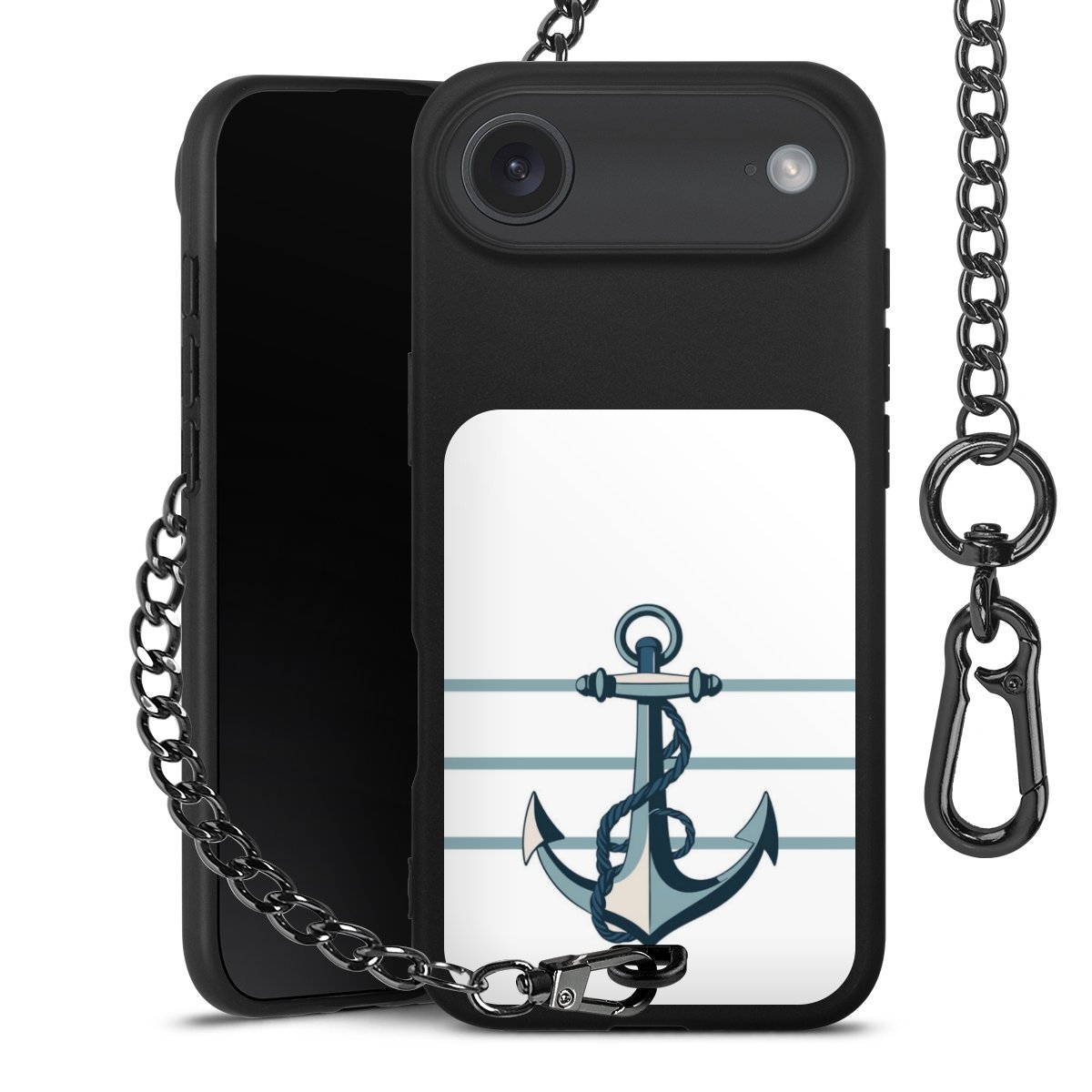 • Mattschwarze Handyhülle mit Metallkette