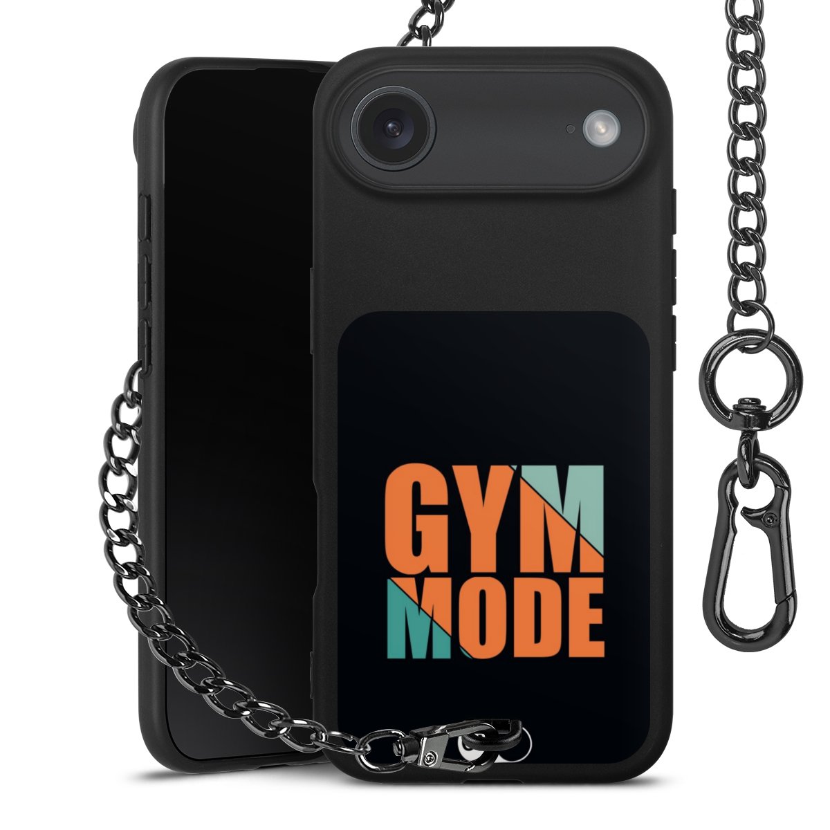 • Mattschwarze Handyhülle mit Metallkette