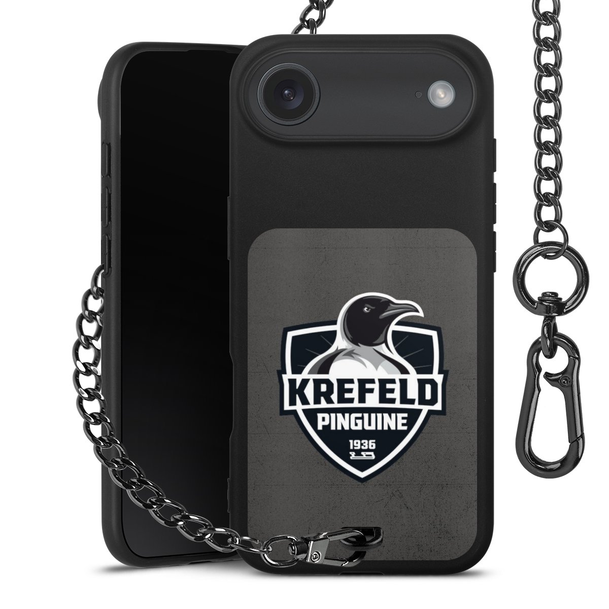 • Mattschwarze Handyhülle mit Metallkette