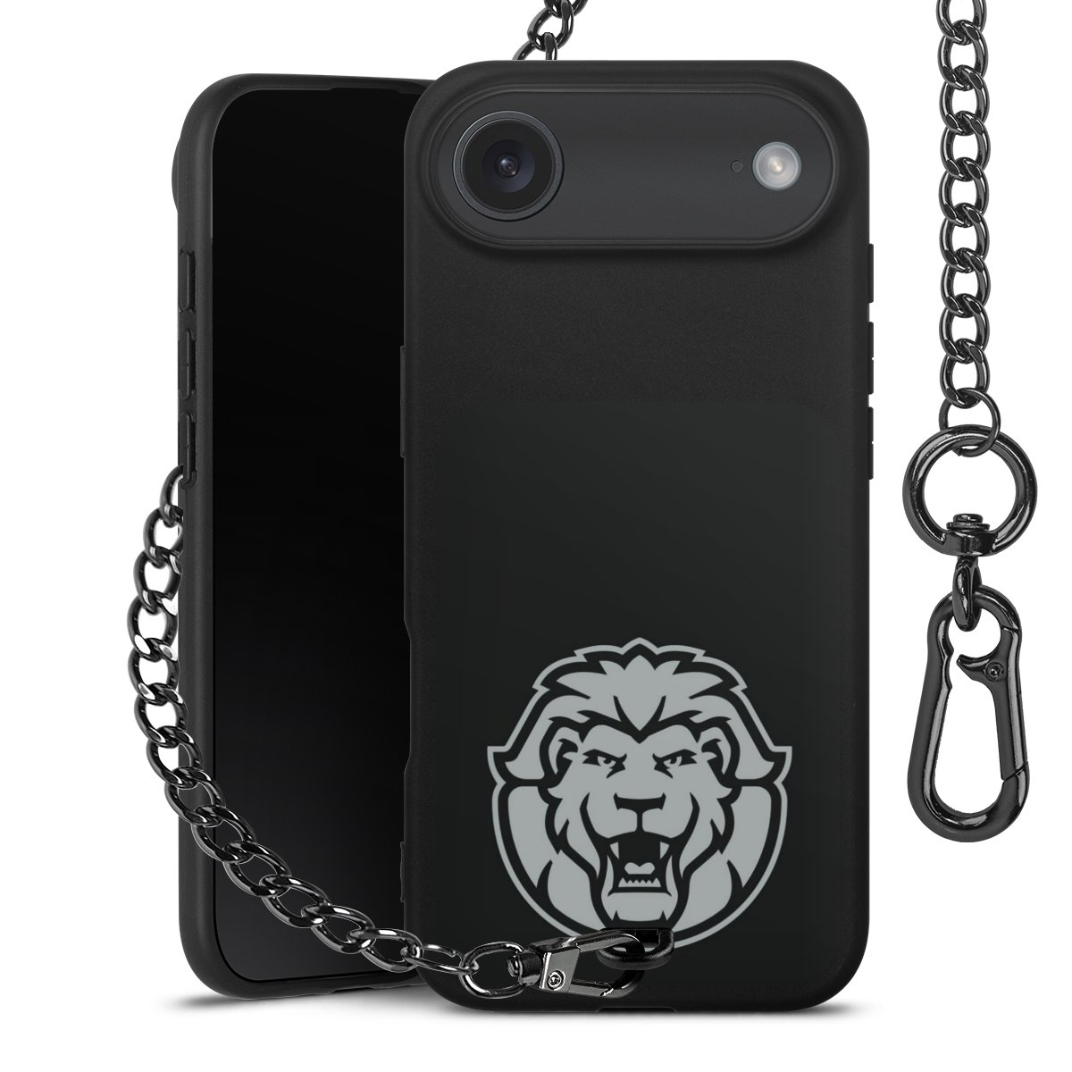 - Mattschwarze Handyhülle mit Metallkette