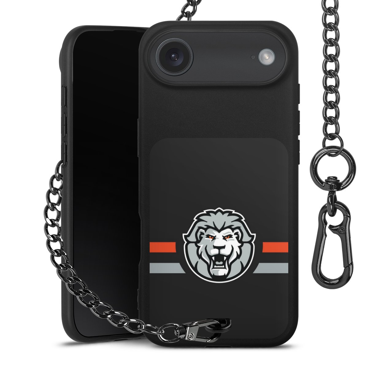 • Mattschwarze Handyhülle mit Metallkette
