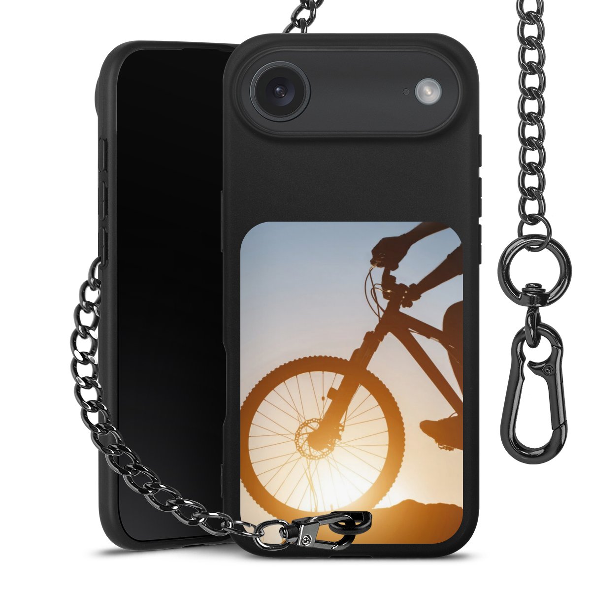 • Mattschwarze Handyhülle mit Metallkette