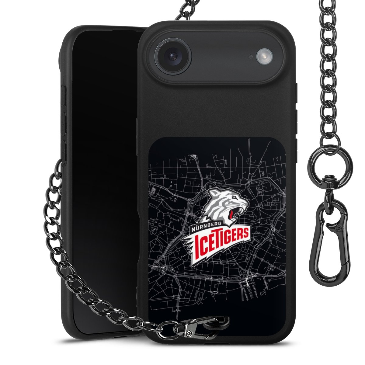 - Mattschwarze Handyhülle mit Metallkette