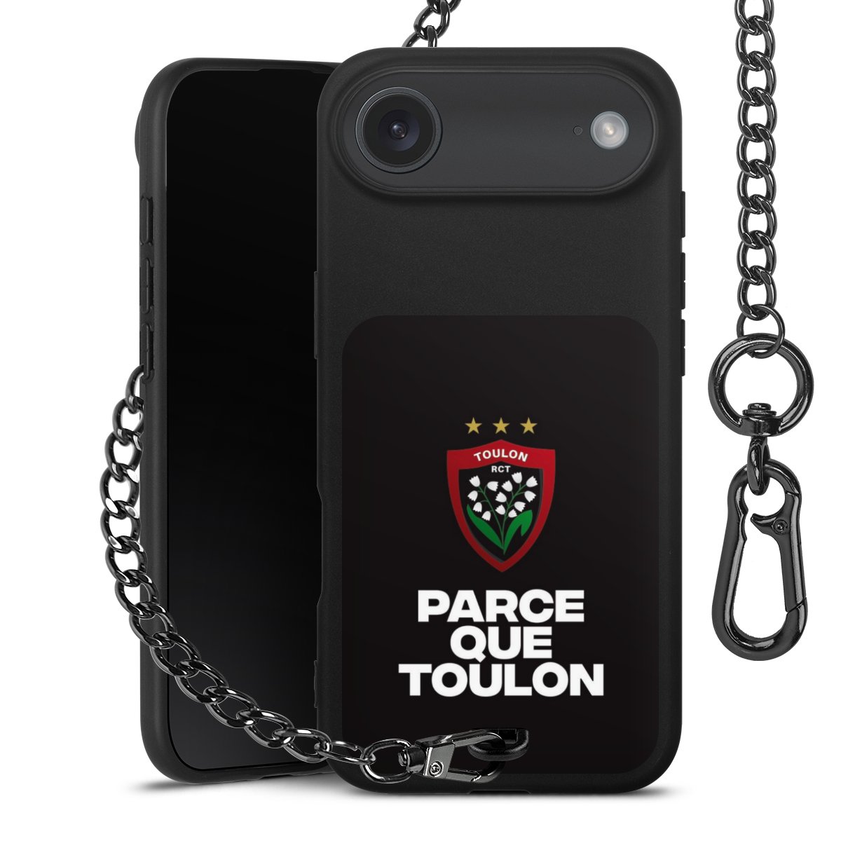 - Mattschwarze Handyhülle mit Metallkette