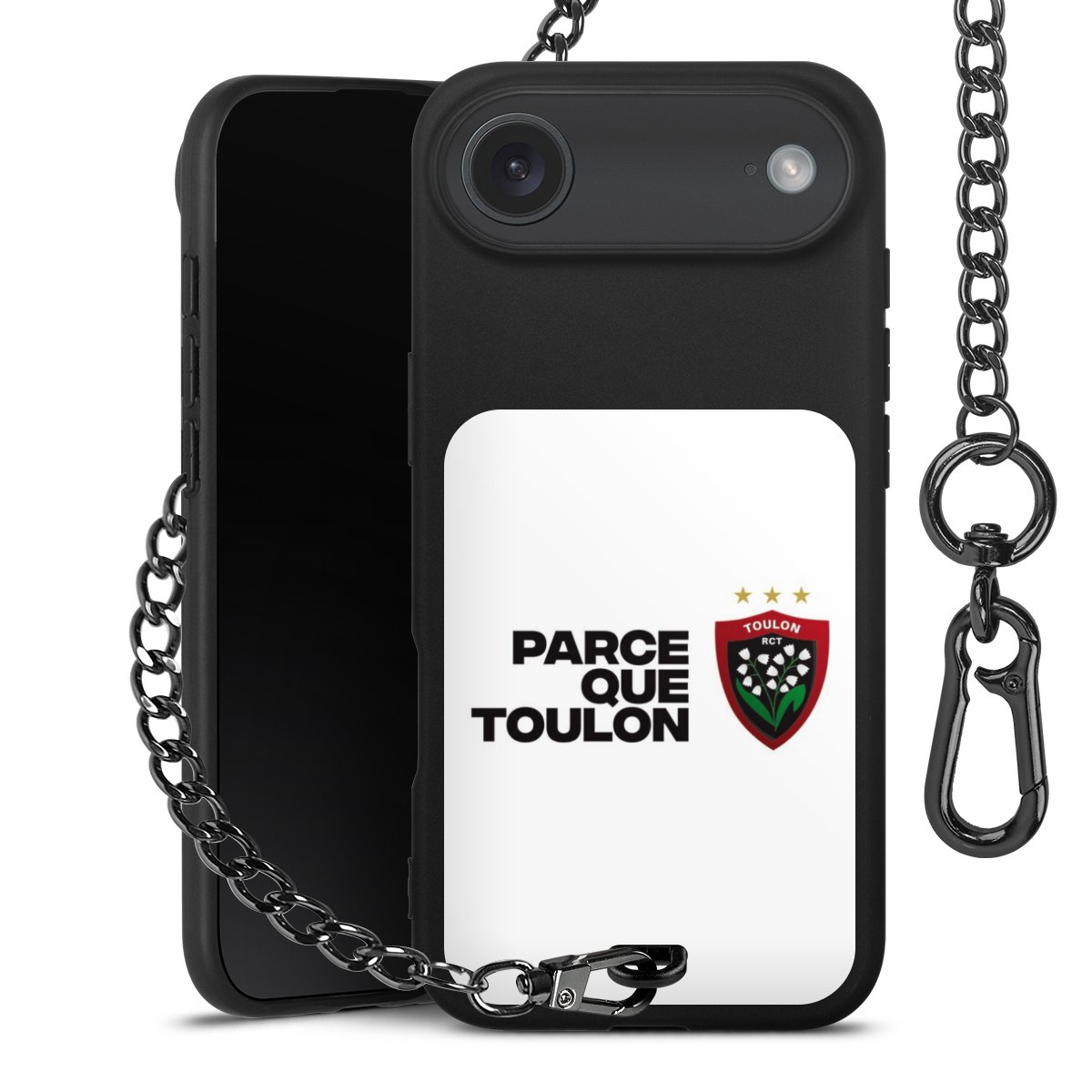 - Mattschwarze Handyhülle mit Metallkette