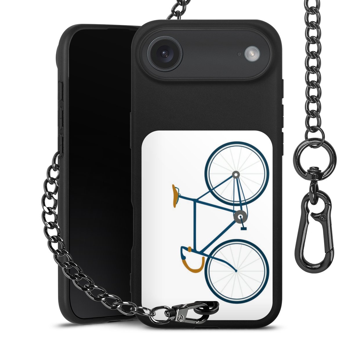 - Mattschwarze Handyhülle mit Metallkette