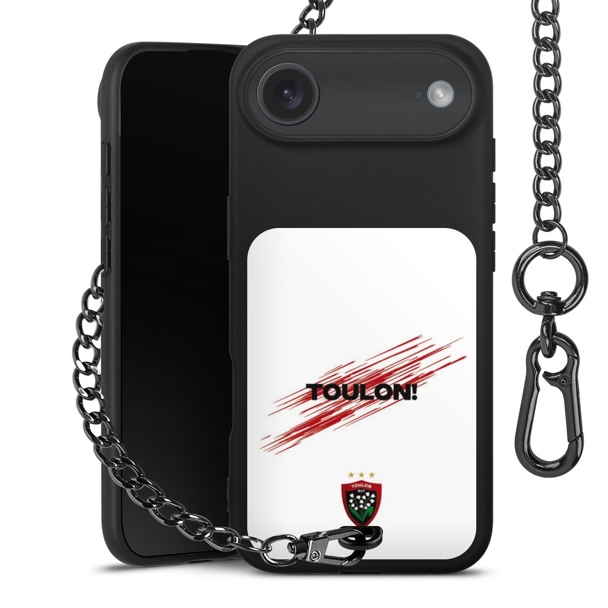 • Mattschwarze Handyhülle mit Metallkette