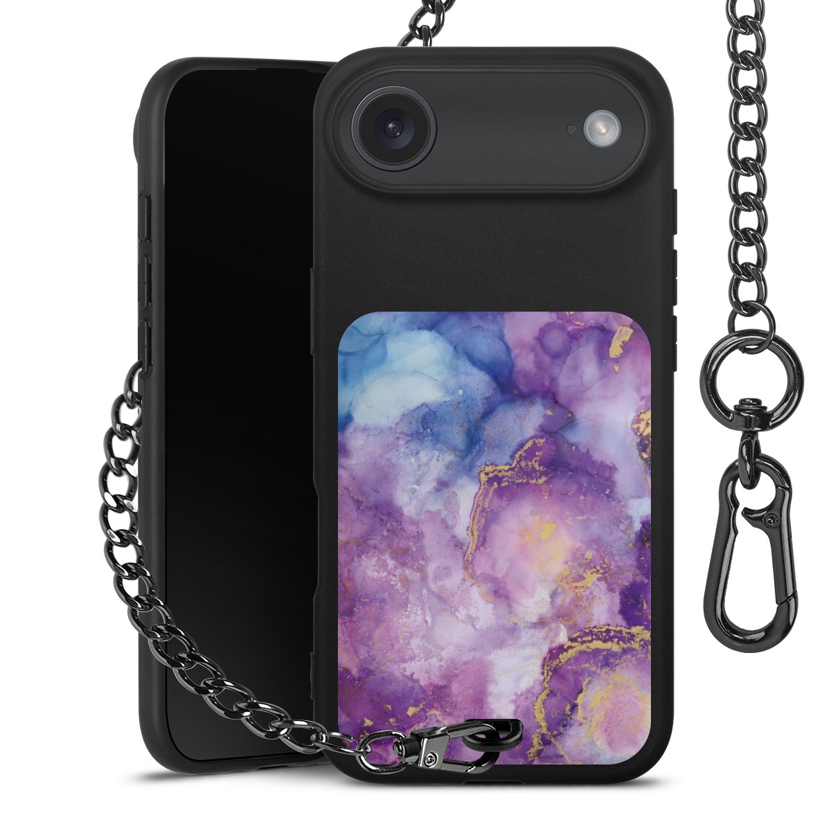 • Mattschwarze Handyhülle mit Metallkette