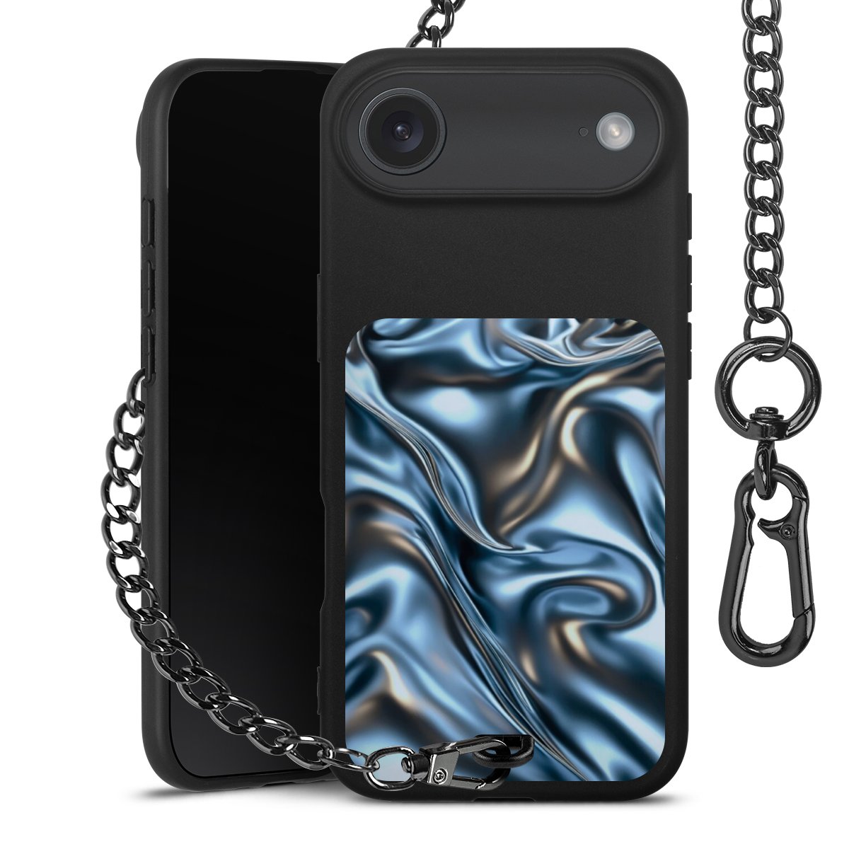 • Mattschwarze Handyhülle mit Metallkette