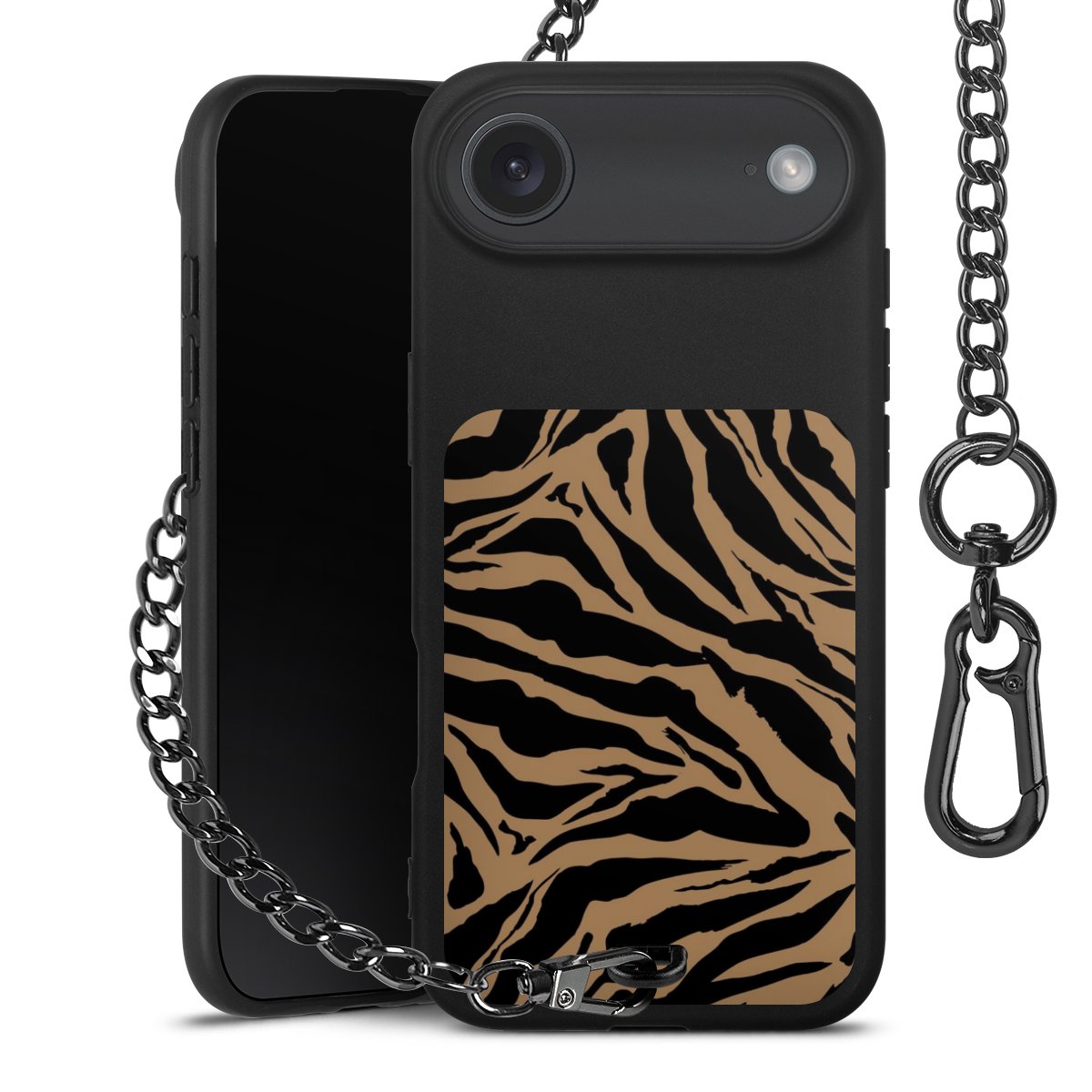 - Mattschwarze Handyhülle mit Metallkette