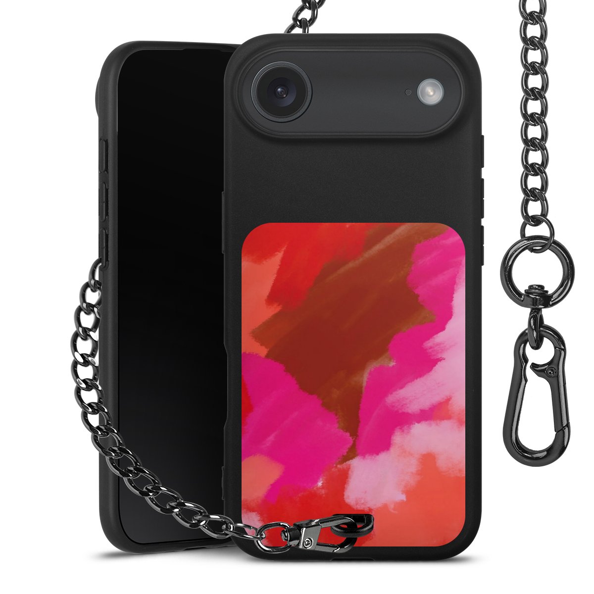 • Mattschwarze Handyhülle mit Metallkette