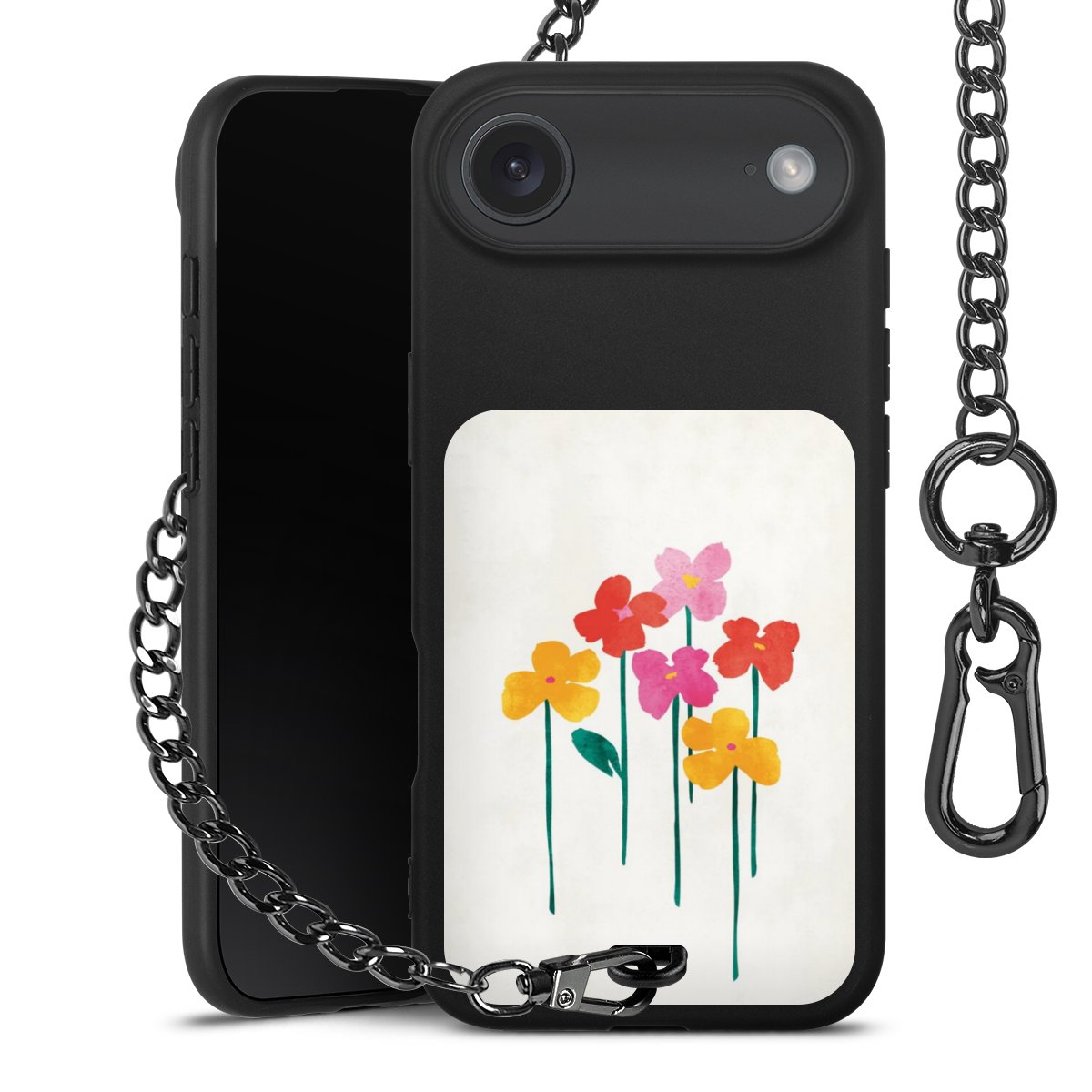 • Mattschwarze Handyhülle mit Metallkette